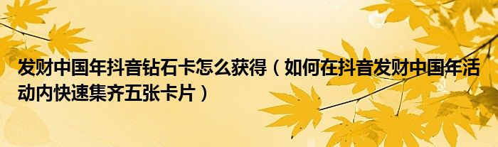 大家好,今天小悦来为大家解答以上问题。发财中国年抖音钻石卡怎么获得,如何在抖音发财中国年活动内快速集齐五张卡片很多人还不知道,现在让我们一起来看看吧!