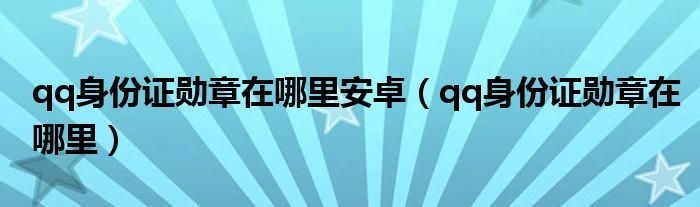 大家好,雨雨来为大家解答以上问题,qq身份证勋章在哪里安卓,qq身份证勋章在哪里很多人还不知道,现在让我们一起来看看吧!