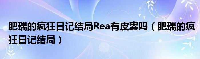 大家好,小晋来为大家解答以下问题,关于肥瑞的疯狂日记结局Rea有皮囊吗,肥瑞的疯狂日记结局很多人还不知道,今天让我们一起来看看吧!