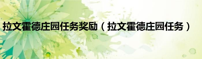 关于拉文霍德庄园任务奖励,拉文霍德庄园任务这个很多人还不知道,今天菲菲来为大家解答以上的问题,现在让我们一起来看看吧!