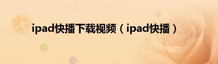 ipad快播下载视频(ipad快播)