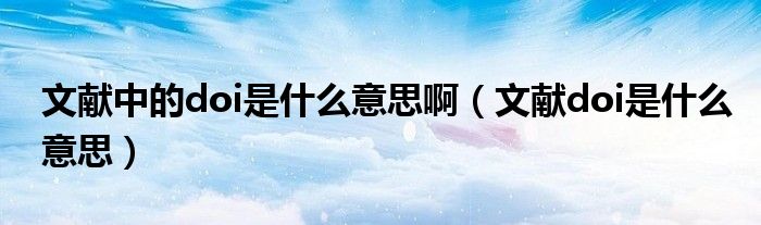 关于文献中的doi是什么意思啊,文献doi是什么意思这个很多人还不知道,今天菲菲来为大家解答以上的问题,现在让我们一起来看看吧!