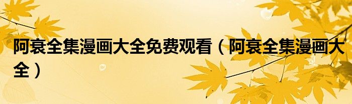 关于阿衰全集漫画大全免费观看,阿衰全集漫画大全这个很多人还不知道,今天菲菲来为大家解答以上的问题,现在让我们一起来看看吧!