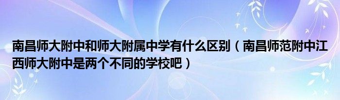 关于南昌师大附中和师大附属中学有什么区别,南昌师范附中江西师大附中是两个不同的学校吧这个很多人还不知道,今天菲菲来为大家解答以上的问题,现在让我们一起来看看吧!