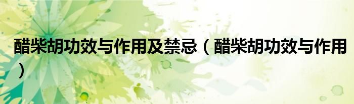 关于醋柴胡功效与作用及禁忌,醋柴胡功效与作用这个很多人还不知道,今天菲菲来为大家解答以上的问题,现在让我们一起来看看吧!