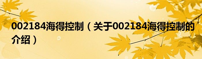 002184海得控制(关于002184海得控制的介绍)