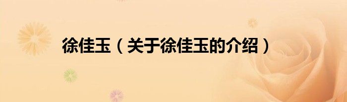 徐佳玉(关于徐佳玉的介绍)