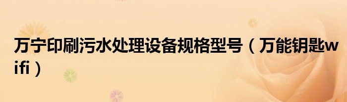 大家好,雨雨来为大家解答以上问题,万宁印刷污水处理设备规格型号,万能钥匙wifi很多人还不知道,现在让我们一起来看看吧!
