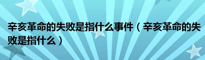关于辛亥革命的失败是指什么事件,辛亥革命的失败是指什么这个很多人还不知道,今天菲菲来为大家解答以上的问题,现在让我们一起来看看吧!