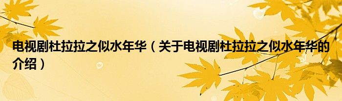 电视剧杜拉拉之似水年华(关于电视剧杜拉拉之似水年华的介绍)