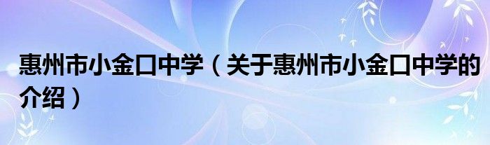 惠州市小金口中学(关于惠州市小金口中学的介绍)