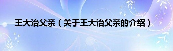 王大治父亲(关于王大治父亲的介绍)