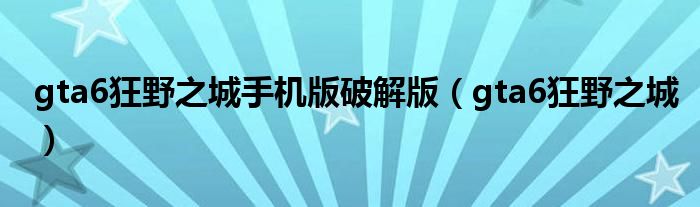 关于gta6狂野之城手机版破解版,gta6狂野之城这个很多人还不知道,今天菲菲来为大家解答以上的问题,现在让我们一起来看看吧!