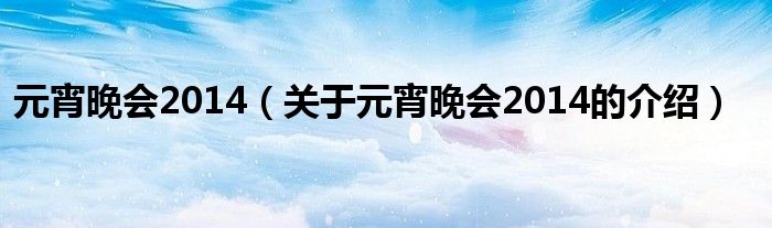 大家好,今天小乐来为大家解答以上的问题。元宵晚会2014,关于元宵晚会2014的介绍很多人还不知道,现在让我们一起来看看吧!