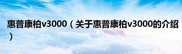 惠普康柏v3000(关于惠普康柏v3000的介绍)