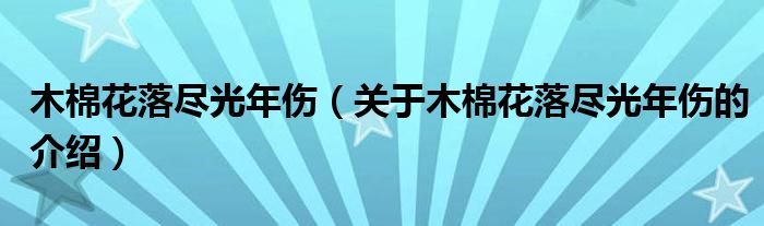 木棉花落尽光年伤(关于木棉花落尽光年伤的介绍)