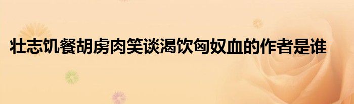 关于壮志饥餐胡虏肉笑谈渴饮匈奴血的作者是谁这个很多人还不知道,今天菲菲来为大家解答以上的问题,现在让我们一起来看看吧!