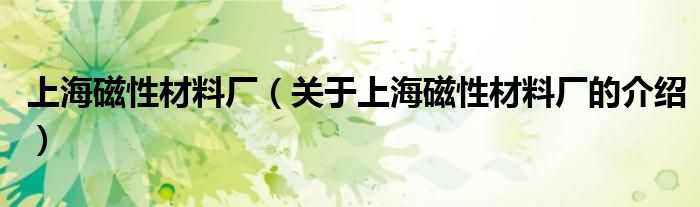 大家好,今天小乐来为大家解答以上的问题。上海磁性材料厂,关于上海磁性材料厂的介绍很多人还不知道,现在让我们一起来看看吧!