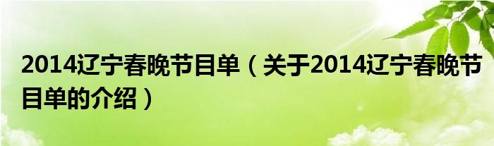 大家好,今天小乐来为大家解答以上的问题。2014辽宁春晚节目单,关于2014辽宁春晚节目单的介绍很多人还不知道,现在让我们一起来看看吧!