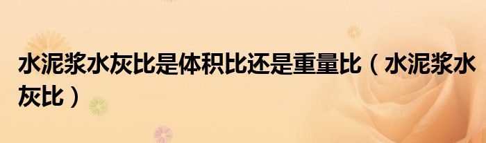 关于水泥浆水灰比是体积比还是重量比,水泥浆水灰比这个很多人还不知道,今天菲菲来为大家解答以上的问题,现在让我们一起来看看吧!