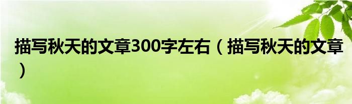 关于描写秋天的文章300字左右,描写秋天的文章这个很多人还不知道,今天菲菲来为大家解答以上的问题,现在让我们一起来看看吧!