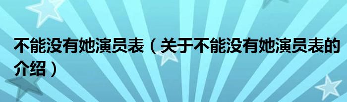 大家好,今天小乐来为大家解答以上的问题。不能没有她演员表,关于不能没有她演员表的介绍很多人还不知道,现在让我们一起来看看吧!