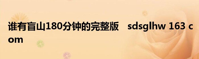 关于谁有盲山180分钟的完整版 sdsglhw 163 com这个很多人还不知道,今天菲菲来为大家解答以上的问题,现在让我们一起来看看吧!