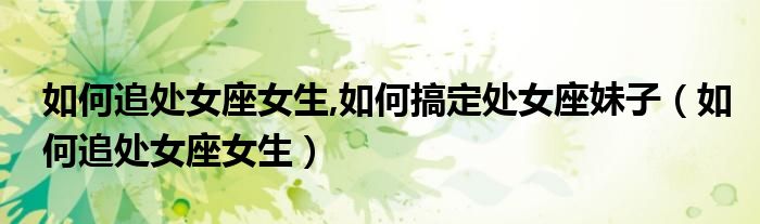 关于如何追处女座女生,如何搞定处女座妹子,如何追处女座女生这个很多人还不知道,今天菲菲来为大家解答以上的问题,现在让我们一起来看看吧!