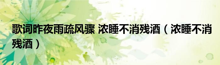 关于歌词昨夜雨疏风骤 浓睡不消残酒,浓睡不消残酒这个很多人还不知道,今天菲菲来为大家解答以上的问题,现在让我们一起来看看吧!