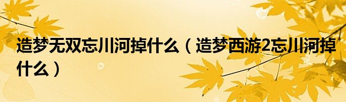 关于造梦无双忘川河掉什么,造梦西游2忘川河掉什么这个很多人还不知道,今天菲菲来为大家解答以上的问题,现在让我们一起来看看吧!