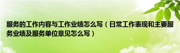 关于服务的工作内容与工作业绩怎么写,日常工作表现和主要服务业绩及服务单位意见怎么写这个很多人还不知道,今天菲菲来为大家解答以上的问题,现在让我们一起来看看吧!