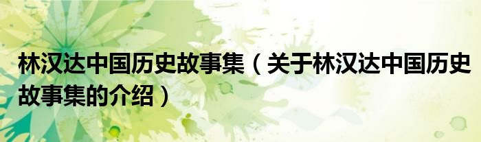 林汉达中国历史故事集(关于林汉达中国历史故事集的介绍)