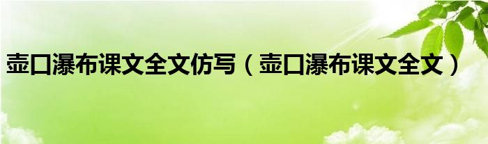 关于壶口瀑布课文全文仿写,壶口瀑布课文全文这个很多人还不知道,今天菲菲来为大家解答以上的问题,现在让我们一起来看看吧!