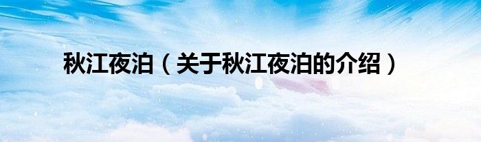 大家好,小都来为大家解答以上的问题。秋江夜泊,关于秋江夜泊的介绍很多人还不知道,现在让我们一起来看看吧!
