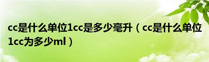 关于cc是什么单位1cc是多少毫升,cc是什么单位 1cc为多少ml这个很多人还不知道,今天菲菲来为大家解答以上的问题,现在让我们一起来看看吧!