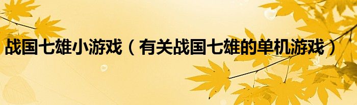 关于战国七雄小游戏,有关战国七雄的单机游戏这个很多人还不知道,今天菲菲来为大家解答以上的问题,现在让我们一起来看看吧!