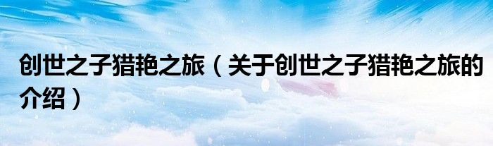 大家好,小都来为大家解答以上的问题。创世之子猎艳之旅,关于创世之子猎艳之旅的介绍很多人还不知道,现在让我们一起来看看吧!