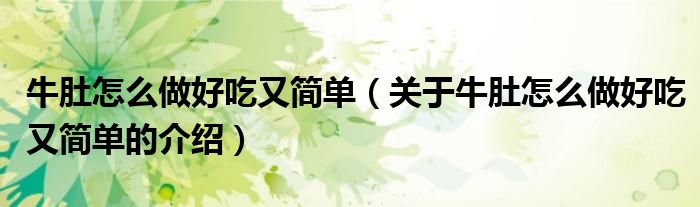大家好,小都来为大家解答以上的问题。牛肚怎么做好吃又简单,关于牛肚怎么做好吃又简单的介绍很多人还不知道,现在让我们一起来看看吧!