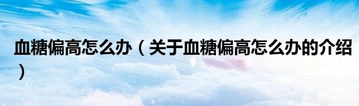 大家好,小都来为大家解答以上的问题。血糖偏高怎么办,关于血糖偏高怎么办的介绍很多人还不知道,现在让我们一起来看看吧!