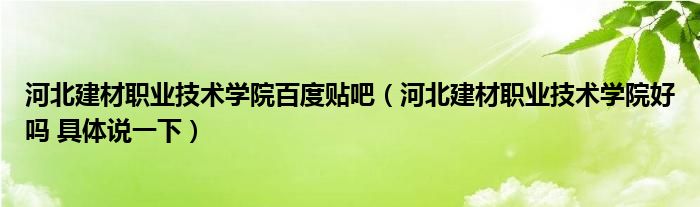 关于河北建材职业技术学院百度贴吧,河北建材职业技术学院好吗 具体说一下这个很多人还不知道,今天菲菲来为大家解答以上的问题,现在让我们一起来看看吧!