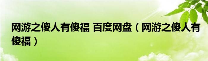 关于网游之傻人有傻福 百度网盘,网游之傻人有傻福这个很多人还不知道,今天菲菲来为大家解答以上的问题,现在让我们一起来看看吧!