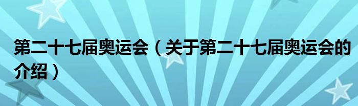 大家好,小都来为大家解答以上的问题。第二十七届奥运会,关于第二十七届奥运会的介绍很多人还不知道,现在让我们一起来看看吧!