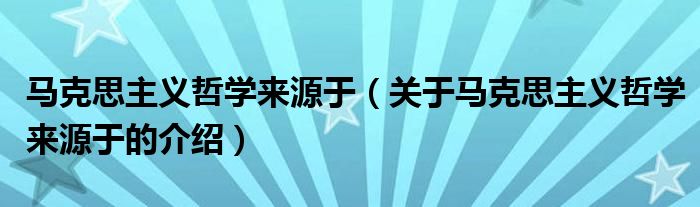 大家好,小都来为大家解答以上的问题。马克思主义哲学来源于,关于马克思主义哲学来源于的介绍很多人还不知道,现在让我们一起来看看吧!