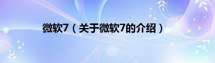 大家好,小都来为大家解答以上的问题。微软7,关于微软7的介绍很多人还不知道,现在让我们一起来看看吧!