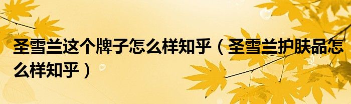 关于圣雪兰这个牌子怎么样知乎,圣雪兰护肤品怎么样知乎这个很多人还不知道,今天菲菲来为大家解答以上的问题,现在让我们一起来看看吧!