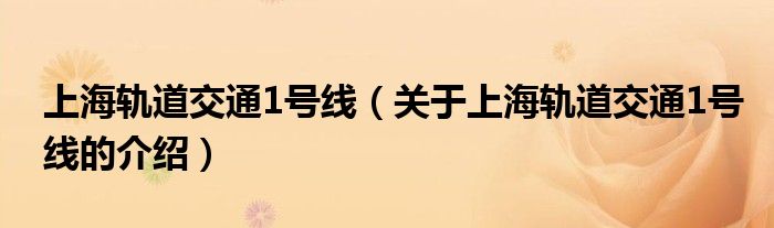 大家好,小都来为大家解答以上的问题。上海轨道交通1号线,关于上海轨道交通1号线的介绍很多人还不知道,现在让我们一起来看看吧!