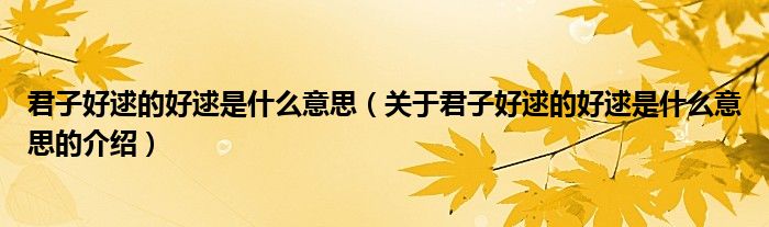 大家好,小都来为大家解答以上的问题。君子好逑的好逑是什么意思,关于君子好逑的好逑是什么意思的介绍很多人还不知道,现在让我们一起来看看吧!