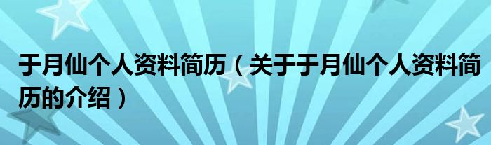 大家好,小都来为大家解答以上的问题。于月仙个人资料简历,关于于月仙个人资料简历的介绍很多人还不知道,现在让我们一起来看看吧!