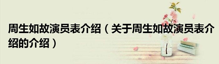 大家好,小都来为大家解答以上的问题。周生如故演员表介绍,关于周生如故演员表介绍的介绍很多人还不知道,现在让我们一起来看看吧!