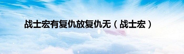 关于战士宏有复仇放复仇无,战士宏这个很多人还不知道,今天菲菲来为大家解答以上的问题,现在让我们一起来看看吧!